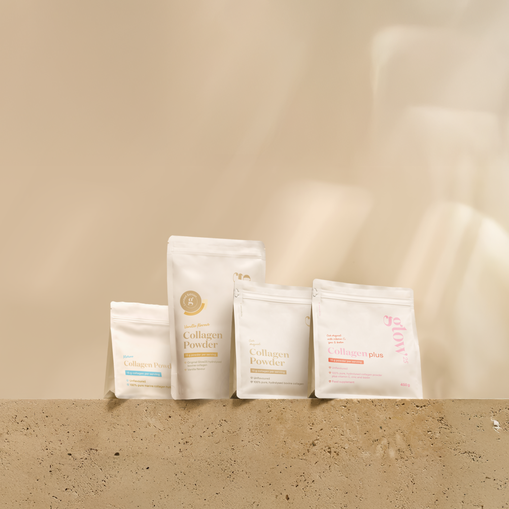 Bonjour, nous sommes Glow25 – une équipe d'experts pro-âge, de spécialistes des soins de la peau et de scientifiques dont la mission est de faciliter un vieillissement sain et confiant.