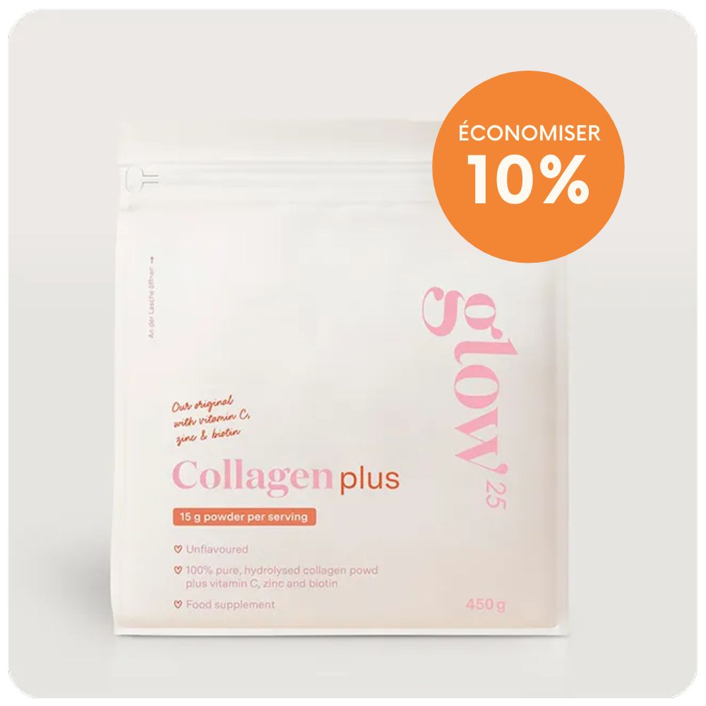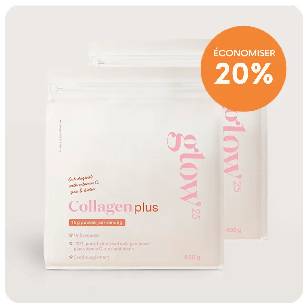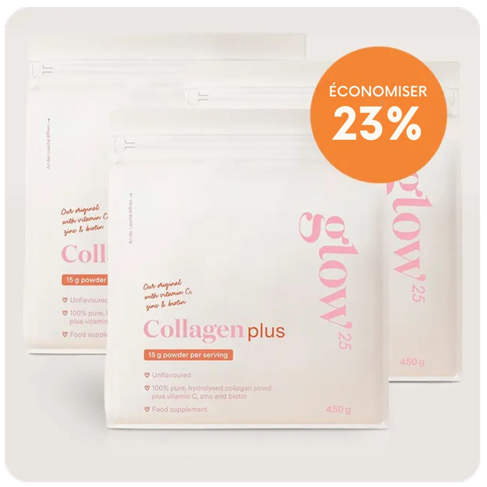 Le collagène Glow25® est recommandé par les dermatologues et consommé par des personnalités, car son efficacité est prouvée par plus de 37 études indépendantes. Les résultats : une peau visiblement plus lisse, moins de douleurs articulaires, des cheveux plus forts et des ongles plus durs. Pour se sentir plus jeune et naturellement belle chaque jour.