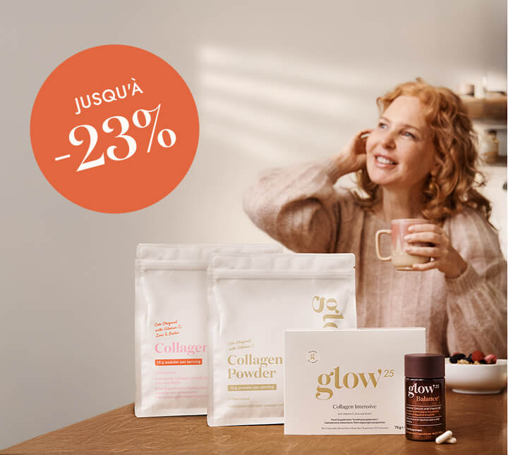 C’est pour accompagner ces changements que Glow25 a développé une gamme de collagène, sans additifs inutiles, conçus pour s’intégrer facilement dans votre quotidien, et pour longtemps.